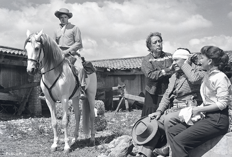 Al ir al campo en su caballo "Rayo de Plata" y en compañía de Espergencio, Gastón encuentra un esqueleto con una flecha en la espalda. La joven Rosita, que no quiere vender el rancho heredado de su difunto padre Matías al villano Gómez, cae de su caballo al ser éste muerto con una flecha envenenada por el indio "Ánima Negra".