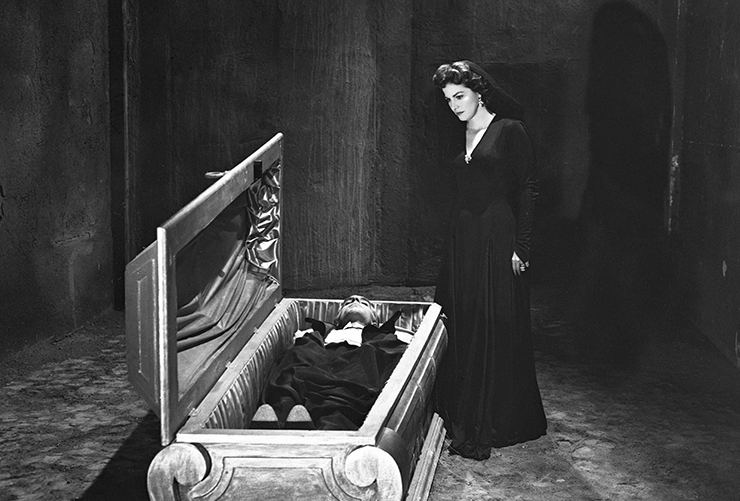 Enrique se queda con ellos. Duval, que es vampiro, recibe la tierra de la que se levantará, después de estar ahí cien años, su hermano el conde Lavud. Con su aliada la vampiresa Eloísa, Duval espera dominar así la comarca, y logra clavar sus colmillos en el cuello de la dormida Marta. Si lo hace otra vez, Marta será también vampiresa. Unos polvos echados en su copa por Eloísa matan al parecer a Marta; la están velando cuando la revive con coramina Enrique, que es en realidad un médico llamado por Emilio.